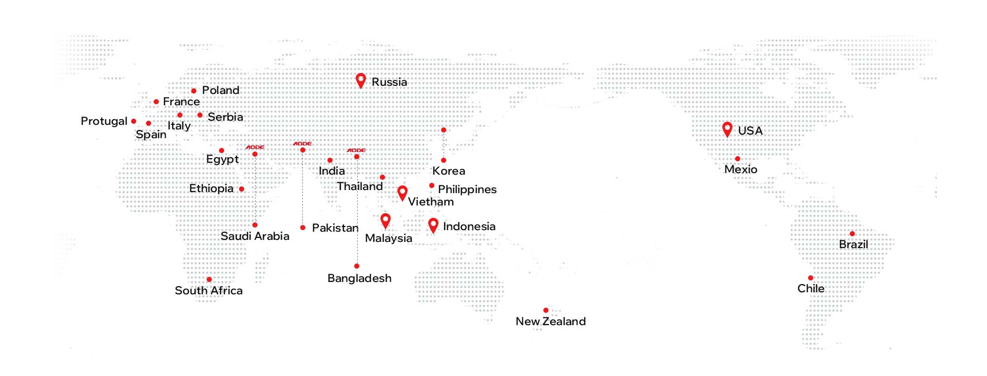 تلتزم شركة AODE بدعم عمليات عملائها العالمية. بمنتجات تعمل بالفعل في أكثر من 40 دولة،